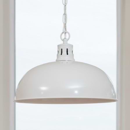 This is the Berwick Rustic Dome Pendant exterior in our Clay White finish. An exquisite, timeless tone that will complement most colour schemes. With a near-white colour that looks like a limestone or clunch stone, this light offers a soothing style that fits in many different decors. The interior of the shade is finished in a classic off-white, for exceptional light output.