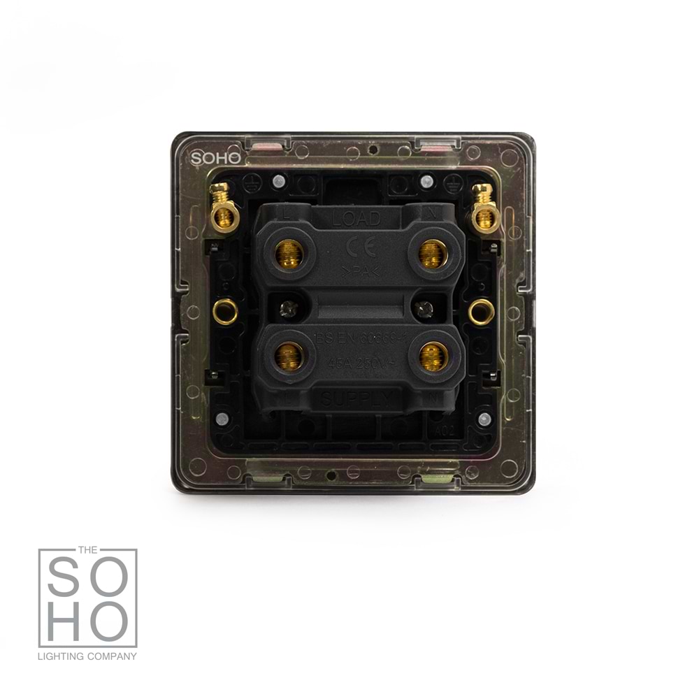 Soho Lighting Black Nickel 45A 1 Gang Double Pole Switch Single Plate Blk Ins Screwless
