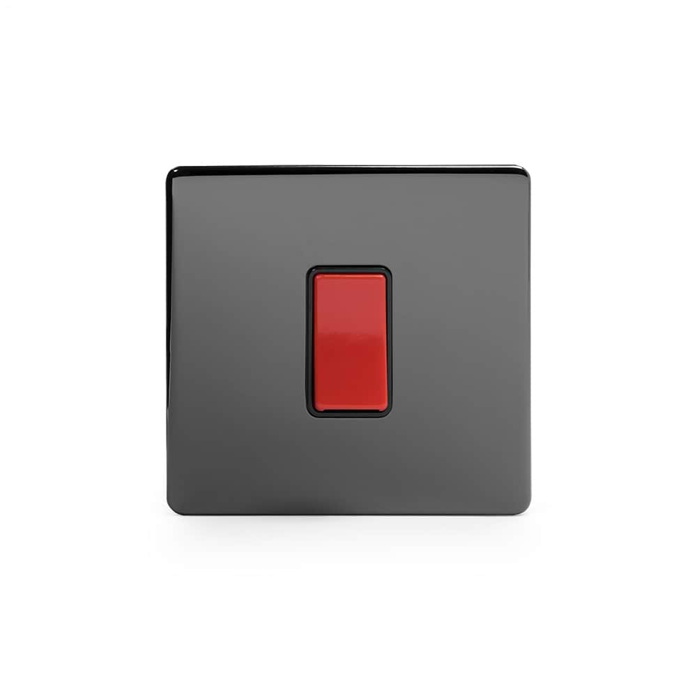 The distinctive look and stylish screwless finish of this Black Nickel 45A 1 Gang Double Pole Switch, Single Plate provides a perfect complement to modern/contemporary kitchens with black appliances, modern bathrooms or rooms with televisions or other popular electrical equipment.