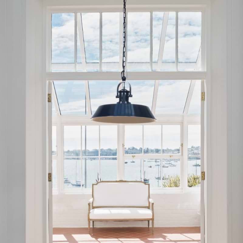 This is the Brewer Industrial Breakfast Bar Pendant exterior in our Squid Ink Blue finish. This luxurious, deep midnight tone of blue black looks spectacular in both period and contemporary settings. This light is exquisitely soothing to the eye and is handmade to mimic a traditional or period enamelled look.