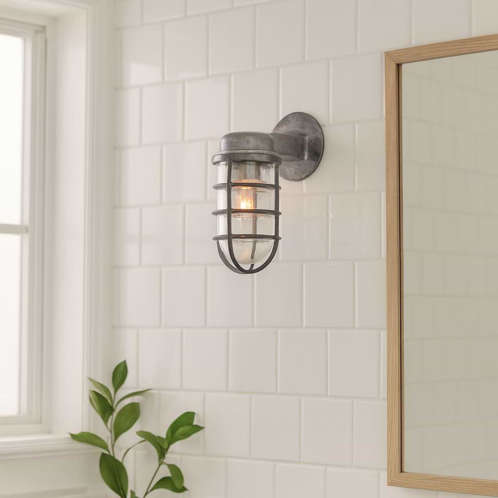 The classically nautical Broadwick bulk head wall light is breathtaking. At 150mm x 100mm x 240mm this IP44 rated nautical sconce bathroom wall light brings a touch of yachting class to your interior.