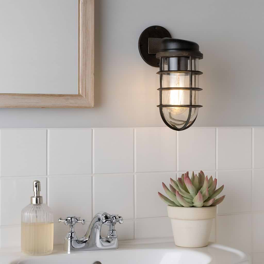 The classically nautical Broadwick bulk head wall light is breathtaking. At 150mm x 100mm x 240mm this IP44 rated nautical sconce bathroom wall light brings a touch of yachting class to your interior.