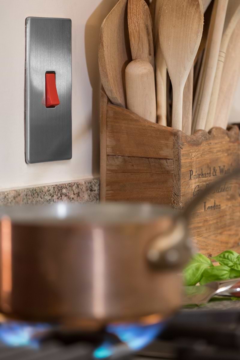 Socket and switch finishes are an important consideration for interior design and styling and should be chosen to match their surroundings. If you have brushed chrome finishes in your kitchen (unit handles/appliances) or bathroom (towel rails etc), then this Brushed Chrome 45A 1 Gang Double Pole Switch, Large Plate will provide the perfect compliment. They work particularly well in modern and contemporary spaces and high traffic areas or for young families.