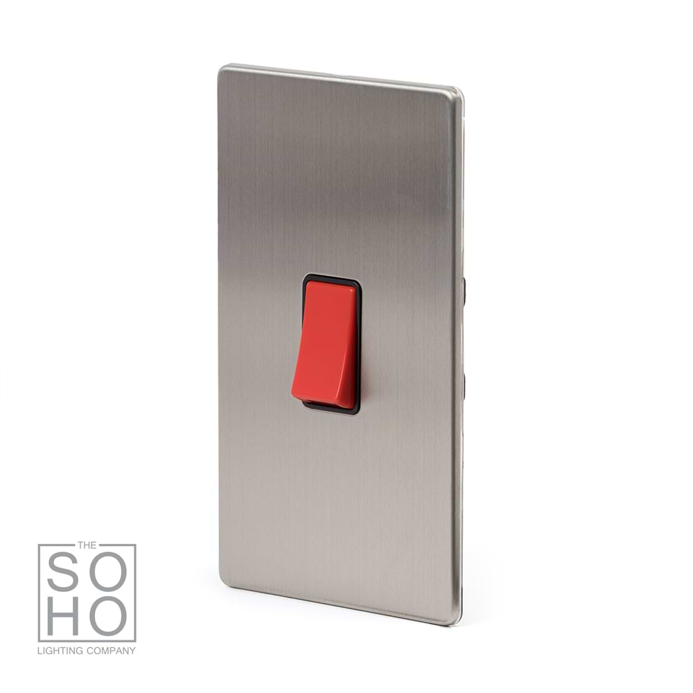 Soho Lighting Brushed Chrome 45A 1 Gang Double Pole Switch Double Plate Blk Ins Screwless