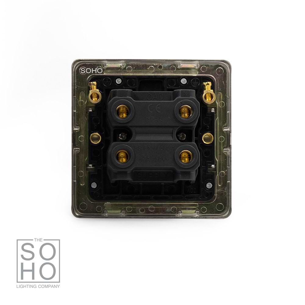 Soho Lighting Brushed Chrome 45A 1 Gang Double Pole Switch Single Plate Blk Ins Screwless