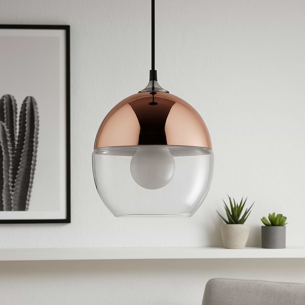 Contemporary in style, this quirky, retro Cambridge clear glass sphere pendant sports a half glass, half rose gold shade creating a beautiful look and showcasing the shape of the bulb.