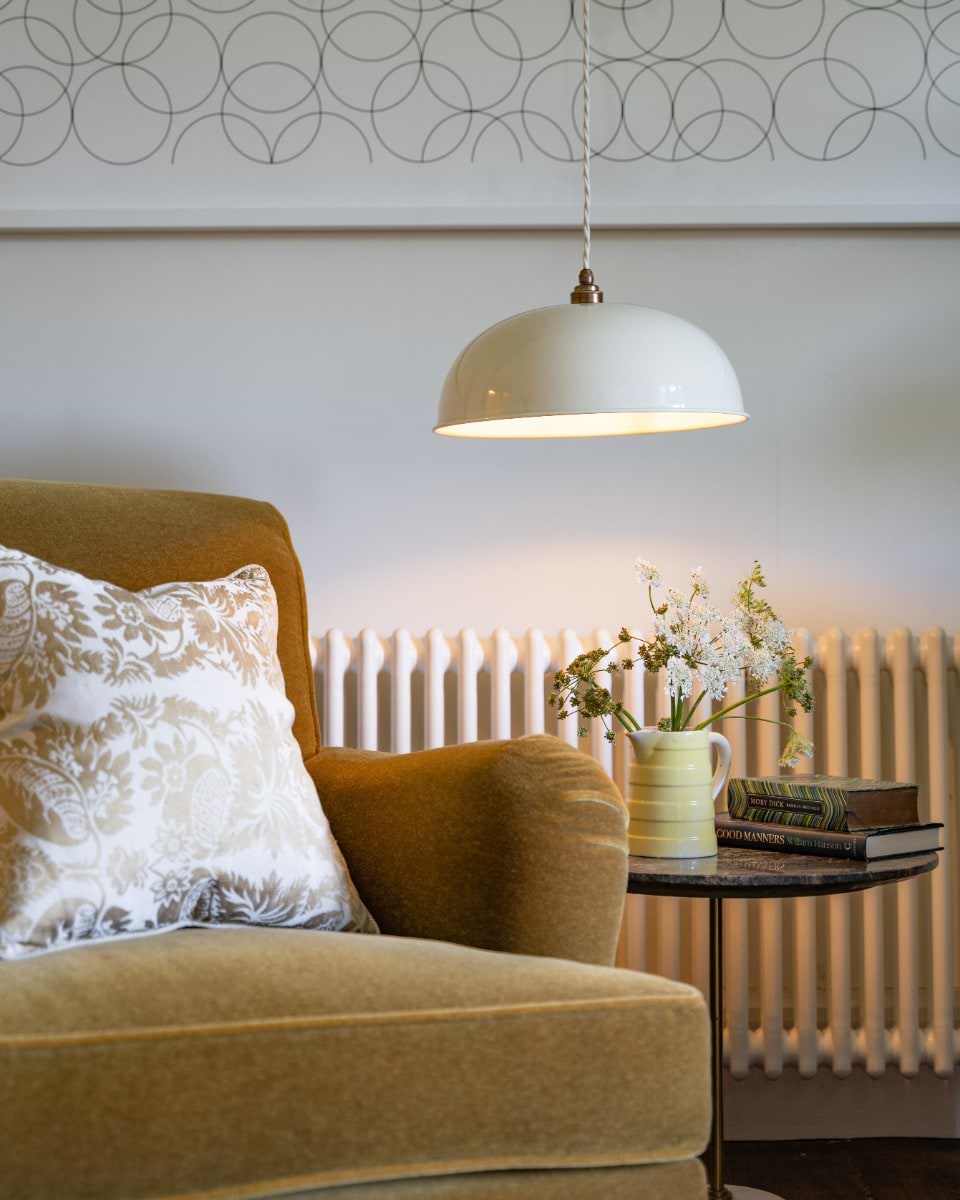 The majestic Worcester pendant brings refined gravitas to any interior setting. It's beautifully curved enamel dome casts light downwards to perfectly illuminate the space below, ideal for both task and decorative lighting. The hand painted clay white finish is a warm period shade and is paired with a choice of bulbholder including chrome, brass, gold, copper, nickel and black nickel. The Worcester has the presence to hang alone and also creates a sensational style statement when hung in multiples above a kitchen island or dining table. Add a fitting bezel for a more industrial feel or remove it to up the elegance.