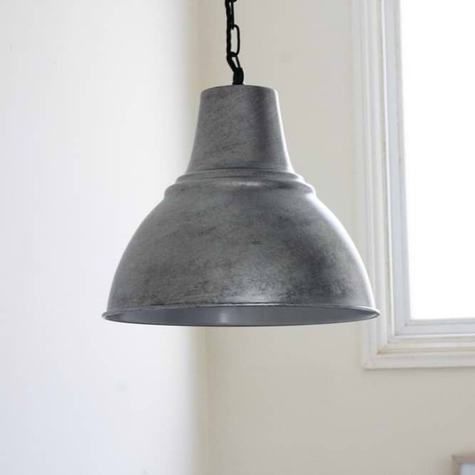The Compton Bell Pendant in blackened Chrome is glorious with it's optional industrial-style cage which can be added or removed to provide a more classic look. This has a galvanised-steel style look. We simply love its versatility!