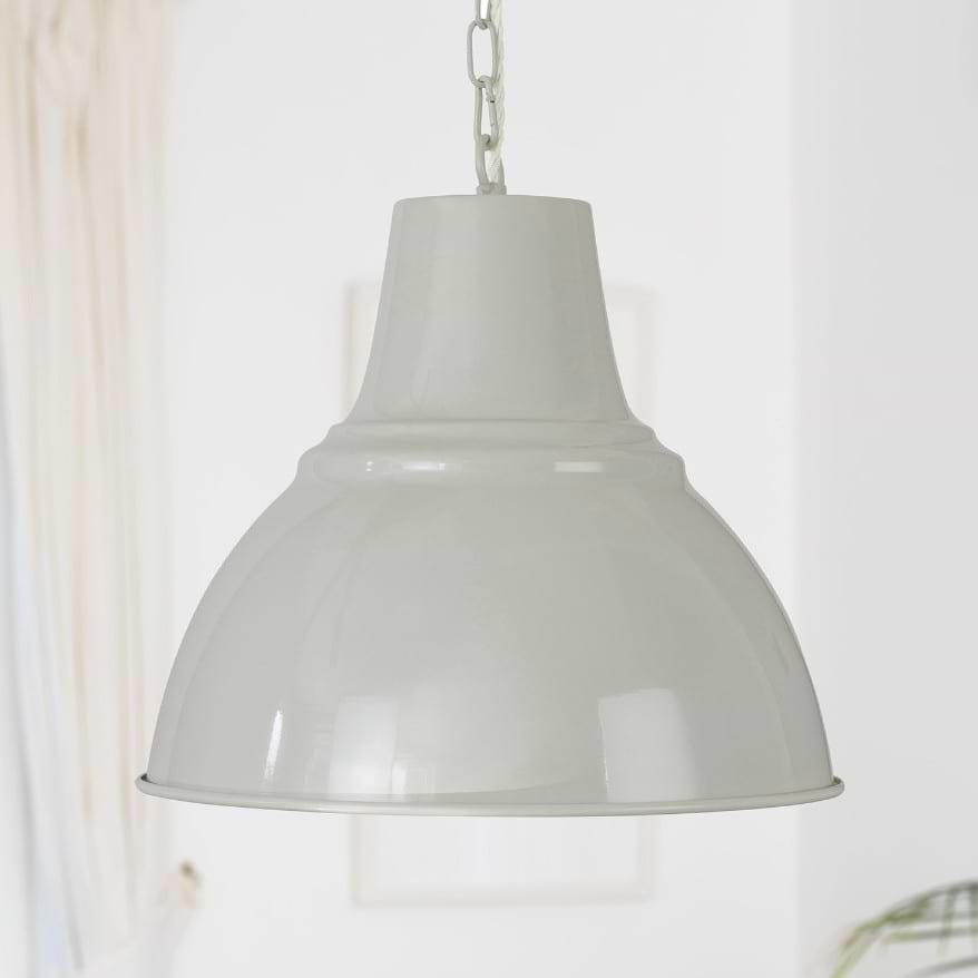 The Compton Caged Bell Pendant in pale grey is glorious with it's industrial style and bell shape.