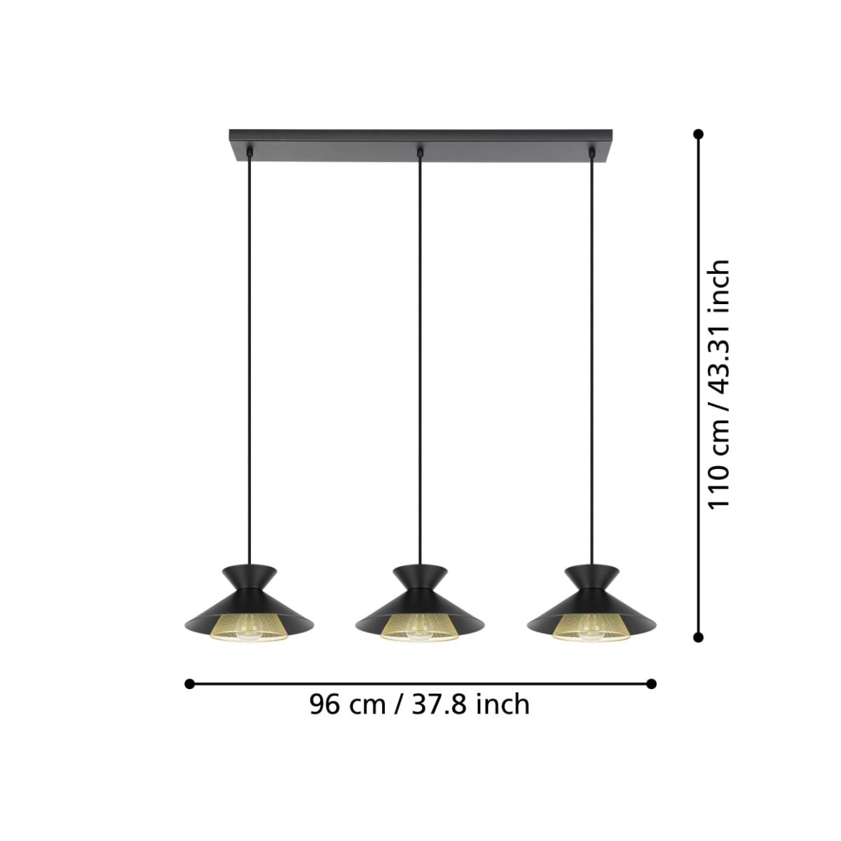 Eglo Grizedale Triple Black Brass E27 Pendant Light