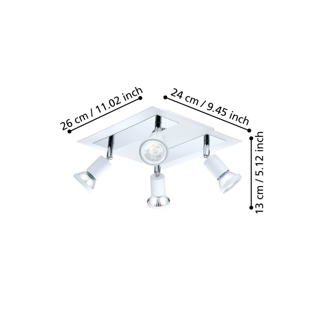 Designed for those who appreciate modern living, the Eglo Sarria finished in a sophisticated white, chrome. part of our popular Spots collection. rated IP20 and ideal for indoor settings. covered by a 2 years / 5 years bulb warranty. delivered in a compact box approx. 280mm x 95mm.
