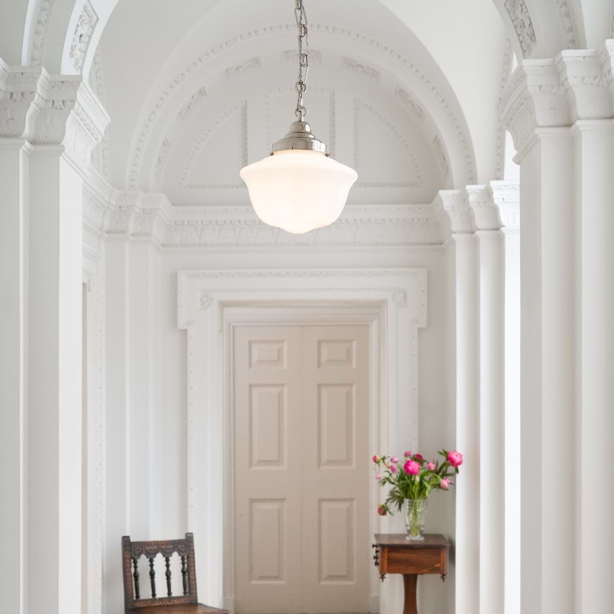 Soho Lighting Frith Nickel Opaque Schoolhouse Stairwell Pendant Light