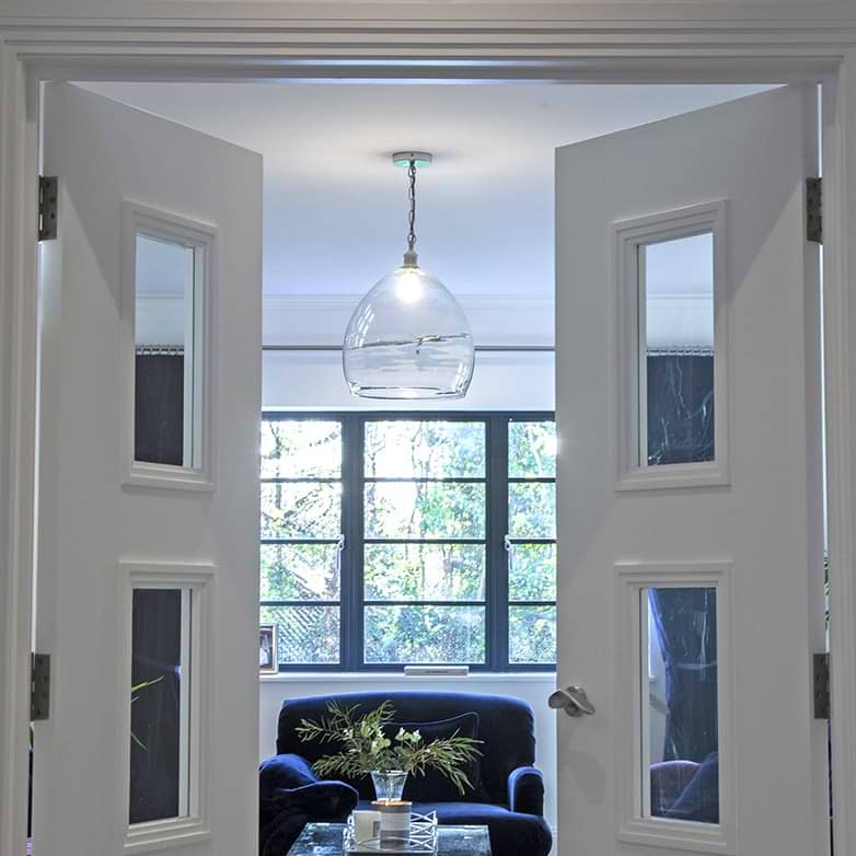 The luxurious and large Harrington pendant light comes with a choice of beautiful metal bulb holders including nickel, gold, brass and copper. Fitted with a chain, this light works well as a centrepiece as well as in a row, above a table.