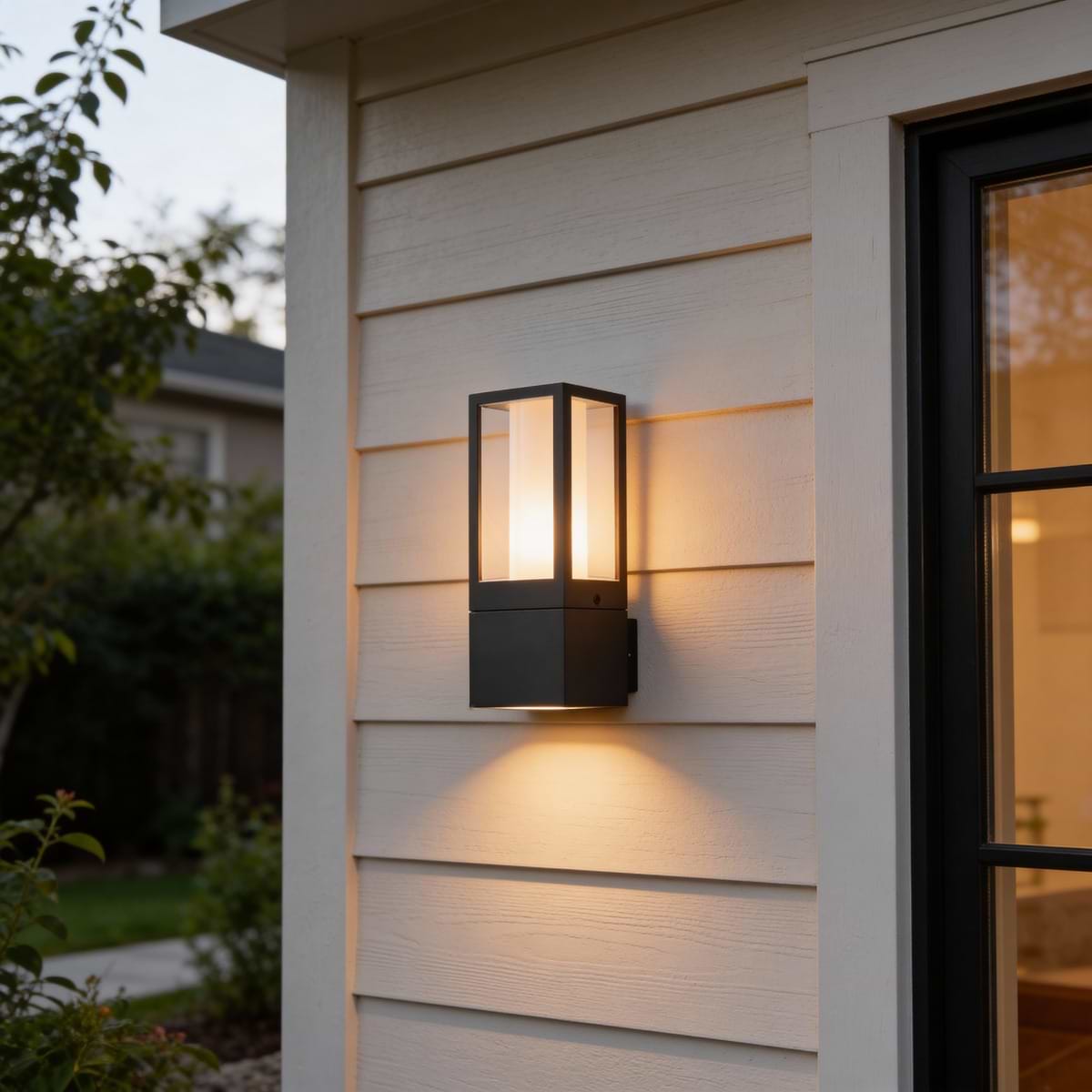 The Lantern wall light is a contemporary exterior lantern constructed from a die cast aluminium alloy frame, containing a translucent polycarbonate shade that provides a diffused light, finished in textured grey. With its smooth, angular design, the dimmable Lantern offers an effortless lighting solution to any modern exterior, whether to light an entryway, porch, or patio.