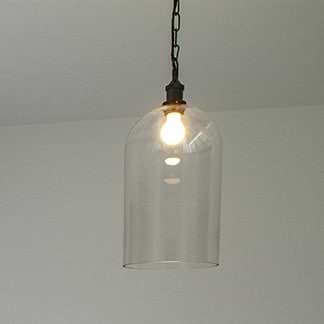 The luxurious and large Lawrence Clear Elongated Dome Glass Pendant Light comes with a choice of beautiful metal bulb holders including nickel, gold, brass and copper. Fitted with a chain, this light works well as a centrepiece as well as in a row, above a table.