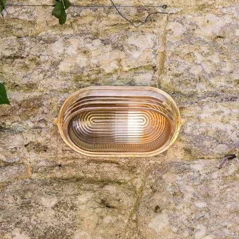 The exquisite Marlborough eyelid bulkhead is hand crafted in solid brass with an ungalvanized polished brass finish, which can be left to beautifully age and patina or be polished to retain its original sheen. A sophisticated redesign of the original nautical bulkhead, with thick prismatic glass and IP65 rating, this stunning wall light will lend understated grandeur to any outdoor or bathroom space . With each light hand created the slight variance in finish denotes craftmanship, quality and prestige.