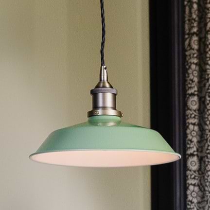 The Trinity mint green pendant light emanates simple classic styling and unpretentious allure. Whilst small and understated, the shade’s subtle sloping sides aid the spread and cast of light to a wider area making it an ideal choice for task or decorative lighting. The hand painted mint green finish conveys a classic ease and is available with a choice of bulb holders including brass, chrome, nickel, copper, gold and black nickel. The Trinity pendant is ideal for task lighting and looks incredible hung in multiples above a kitchen island or dining table. Add a fitting bezel for a more industrial feel or remove it to up the elegance.
