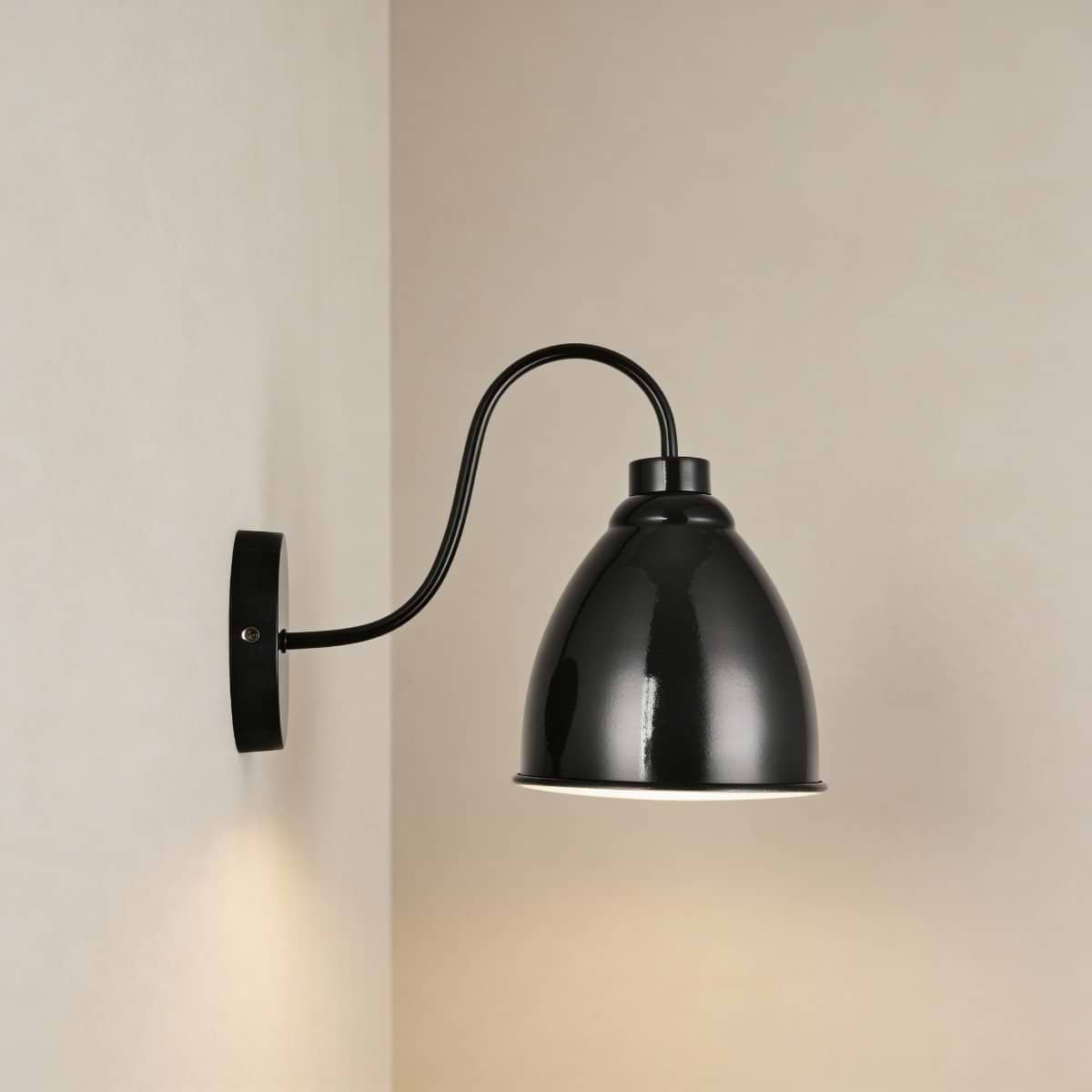 This beautiful Oxford vintage style wall light in gloss black works well with both contemporary and traditional style decors. The smooth, curved body lends a warm retro style to any room, and the enamelled look with natural subtle imperfections gives the light authenticity and charm.