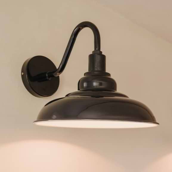 This is the Portland Reclaimed Style Wall Light exterior in our Squid Ink Blue finish. This luxurious, deep midnight tone of blue black looks spectacular in both period and contemporary settings. This light is handmade to deliver a period enamelled look and the inside of the shade is finished in classic off-white, for exceptional light output.