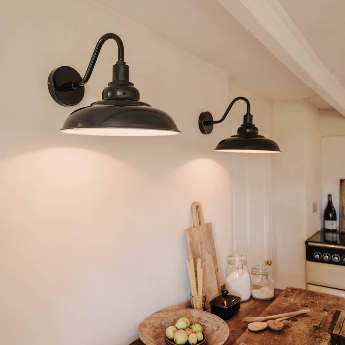 This is the Portland Reclaimed Style Wall Light exterior in our Squid Ink Blue finish. This luxurious, deep midnight tone of blue black looks spectacular in both period and contemporary settings. This light is handmade to deliver a period enamelled look and the inside of the shade is finished in classic off-white, for exceptional light output.