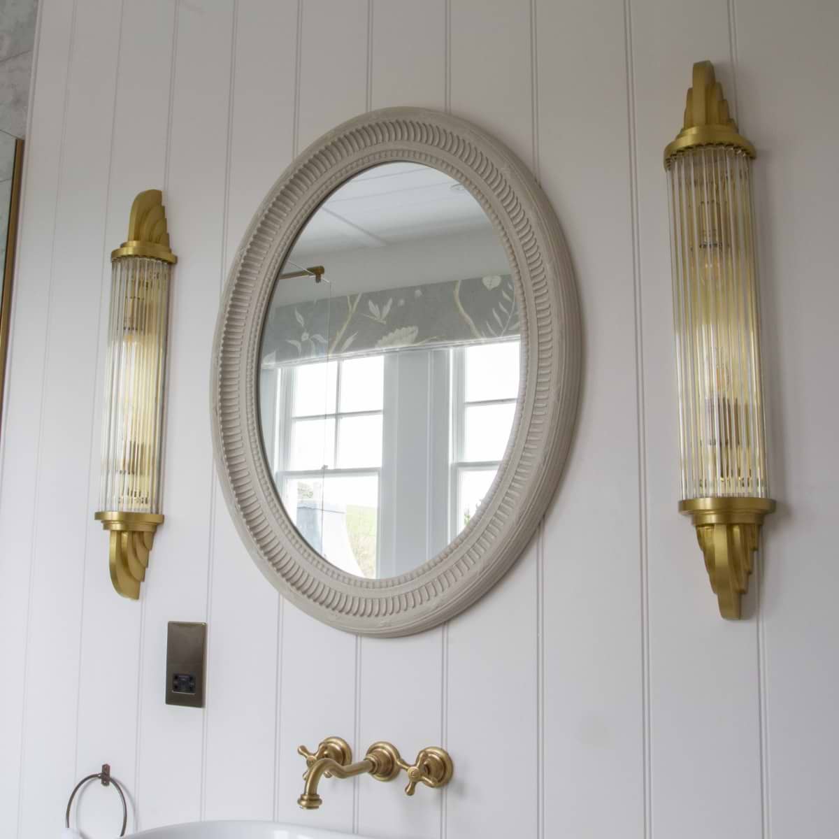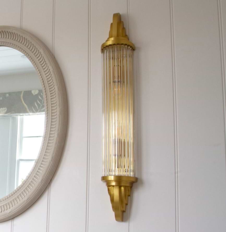 The sleek lines of our stunning Sheraton brass pillar wall light will add style and sophistication to any interior. The art deco scallop shell detailing is hand finished in solid brass and the beautiful prismatic glass casts out pure, uninhibited light to perfectly illuminate the space around. These exquisite lights are especially effective at lighting mirrors.