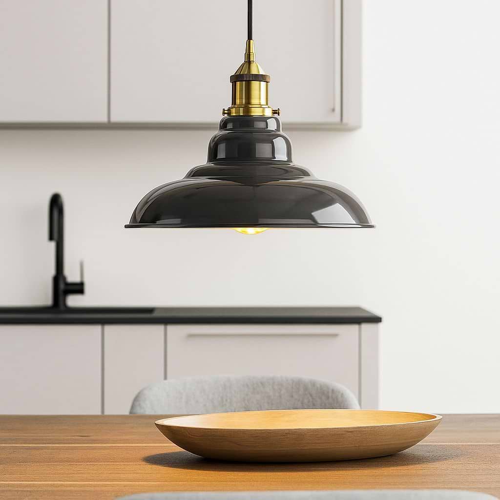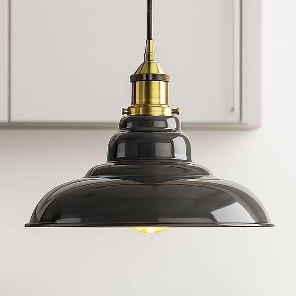 The fabulously versatile St Edmund's pendant with it's softly rounded enamel dish shade brings style to both traditional and contemporary settings. With a wide, downwards projection of light this pendant is perfect for task lighting whilst aesthetically enhancing any interior. The hand painted slate grey finish is a colour of magnificent depth and is paired with a choice of bulb holder including gold, black nickel, chrome, brass, copper and nickel. The St Edmund's pendant looks sensational hung in multiples above a kitchen island or dining table and add a fitting bezel to create a more industrial feel or remove it to up the elegance.