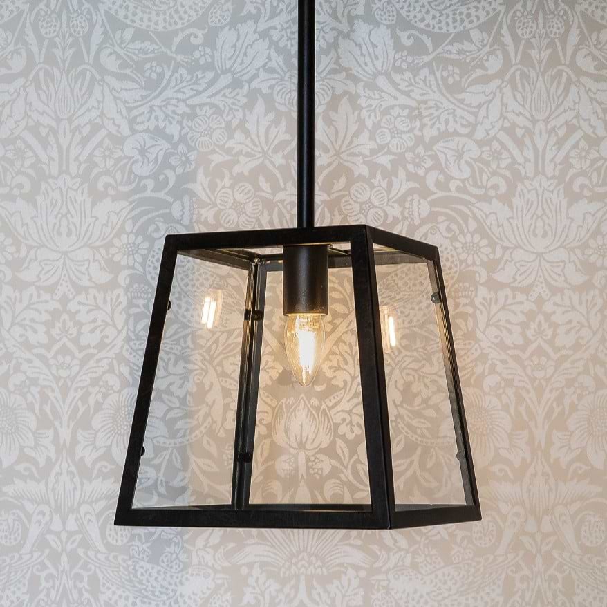 Small Geo Trapeze Metal and Glass Lantern Pendant Light - Ludlow Collection