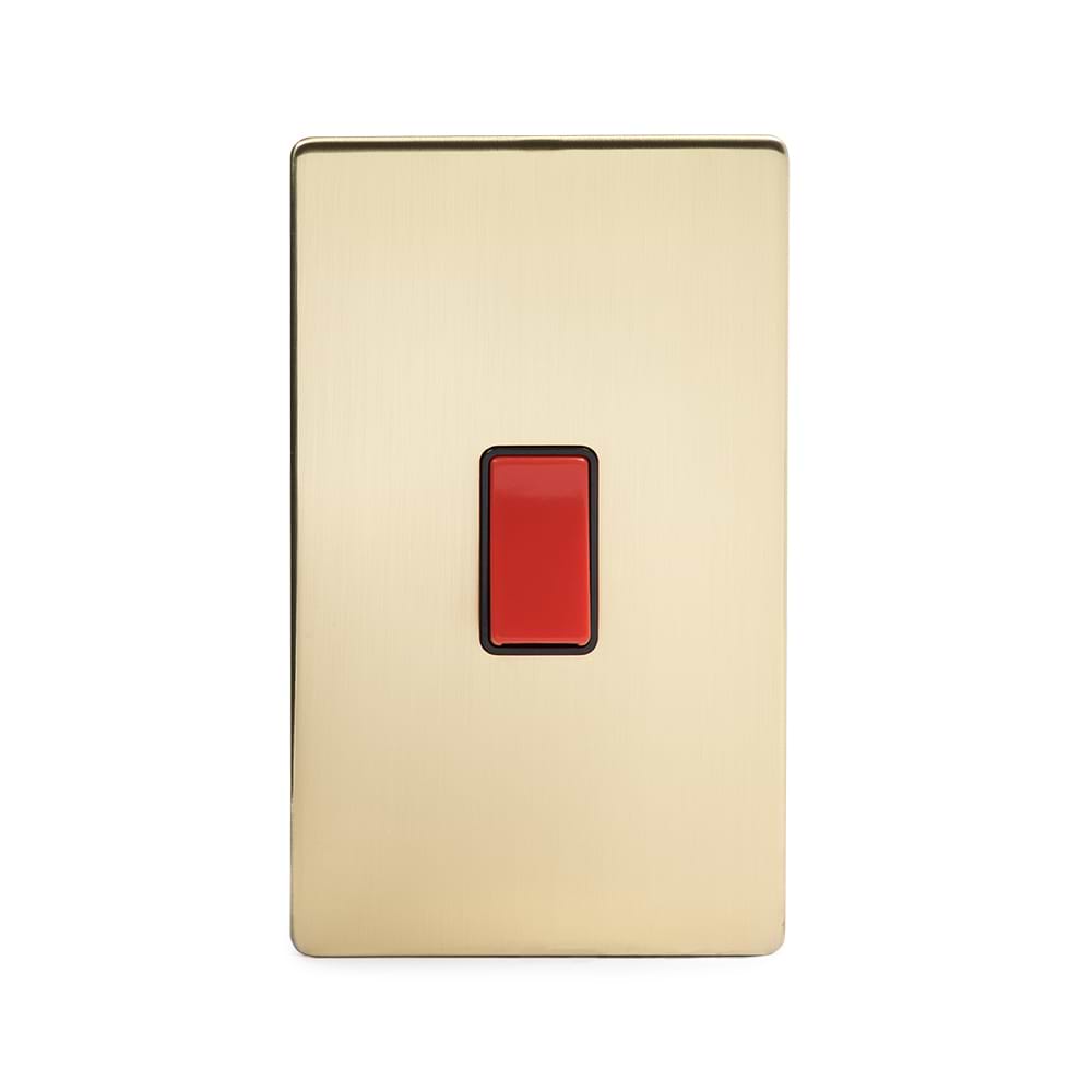 Soho Lighting Brushed Brass 45A 1 Gang Double Pole Switch Large Plate Blk Ins Screwless
