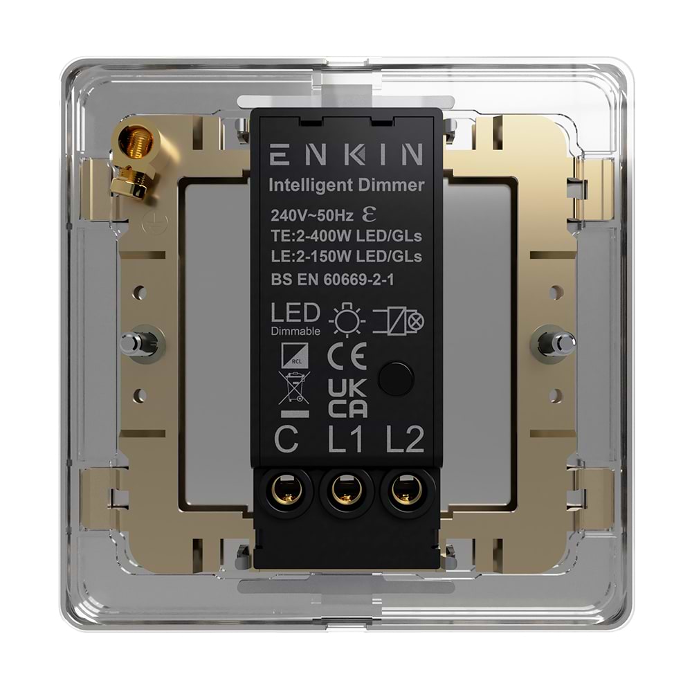 Our switch comes complete with an Enkin PDM400, a robust, high-capacity LED intelligent dimmer is capable of controlling a much larger lighting arrangement. With an integrated soft-start function designed to prolong the life of LEDs, and silent, flicker free Enkin technology, the PDM400 provides you with effortless control for optimal ambient lighting.