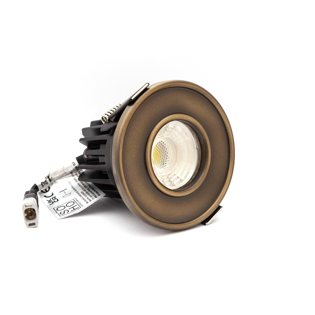 Soho Lighting Aged Brass LED Downlights, Fire Rated, Fixed, IP65, CCT Switch, High CRI, Dimmable