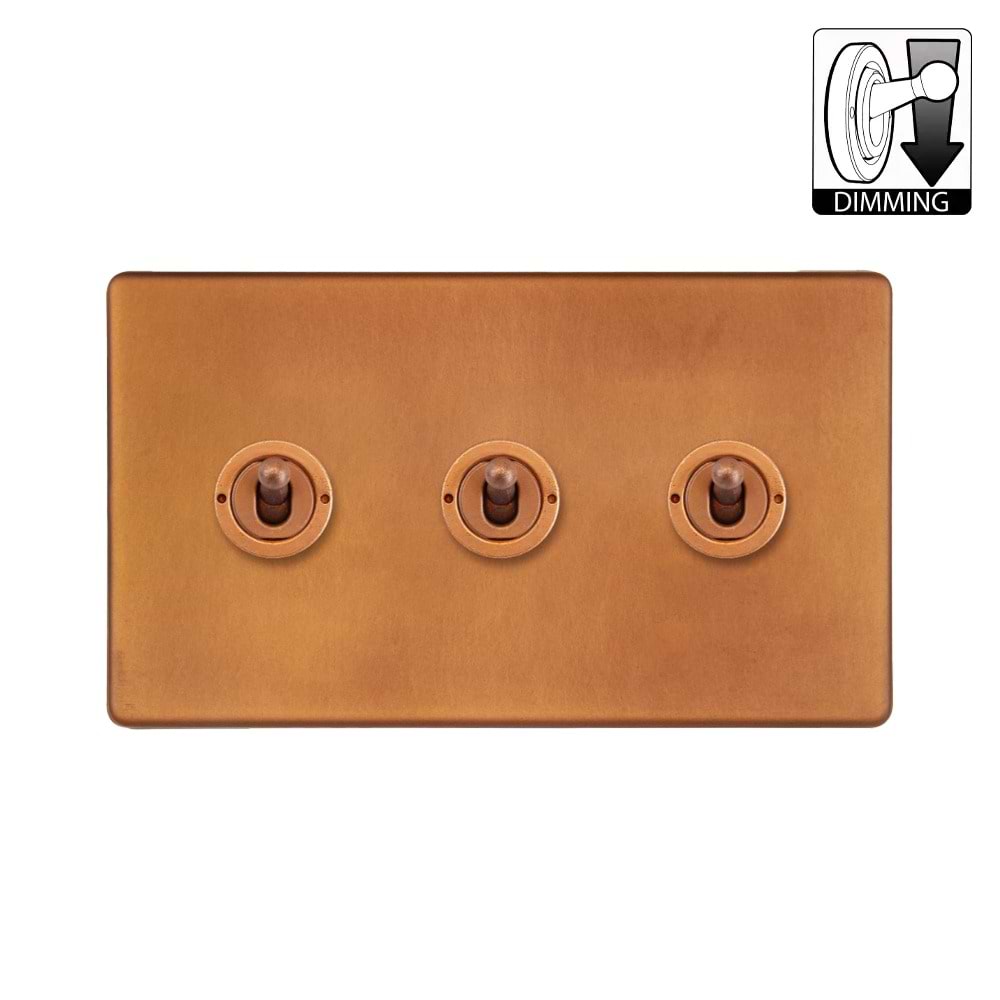 Soho Lighting Antique Copper 3 Gang Dimming Toggle Switch