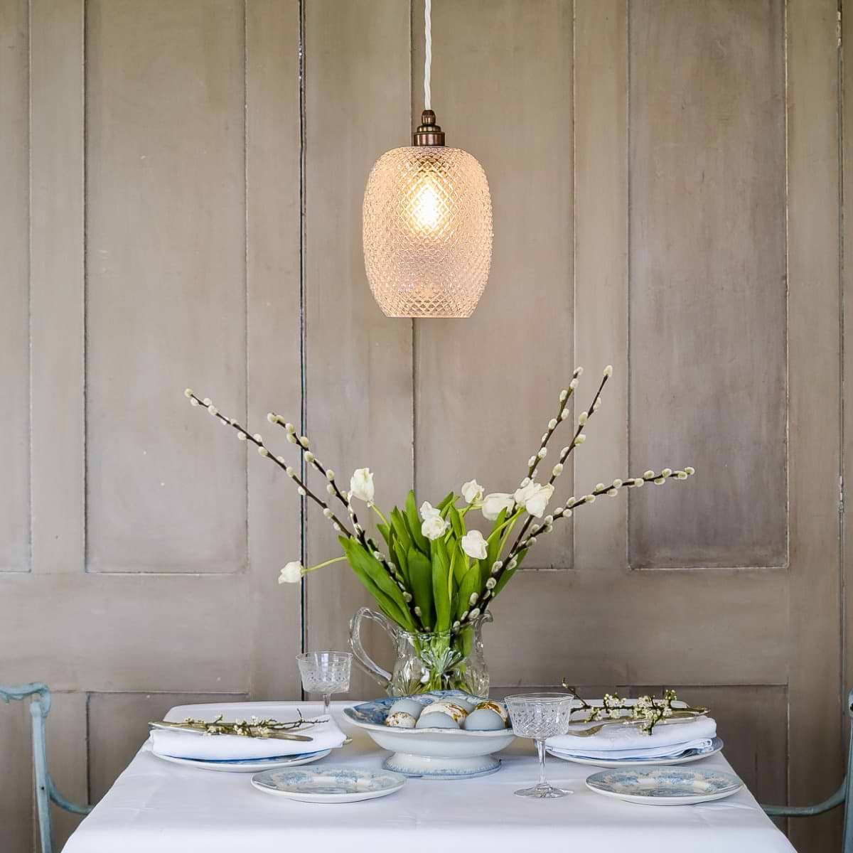With a delightful pineapple shape, the Prismatic Glass Light strikes an elegant balance between vintage and art deco luxury. The prismatic glass provides a delicate display of light in all directions to create a pleasant atmosphere.