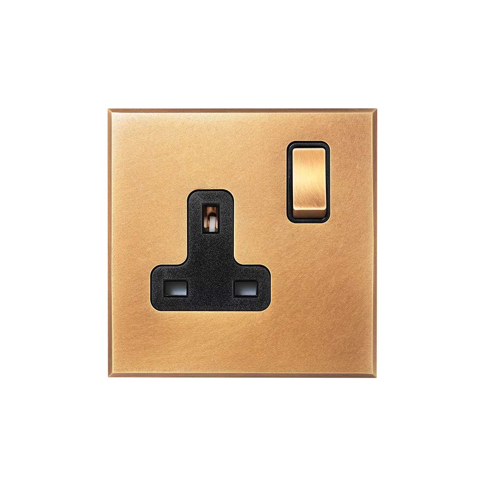 Soho Lighting's Palaces Collection 1 Gang 13A Double Pole Switched Socket with Black Insert switch in Natural Brass shows off brass in its raw and timeless form.