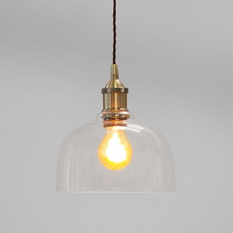 A pure and understated classic, the hand blown clear glass pendant emanates style and panache. The deep dome shade delivers versatility for modern and timeless settings and works well in singles and multiples. The comes with a choice of bulb holder, from brass, chrome, nickel, copper, gold and black nickel.