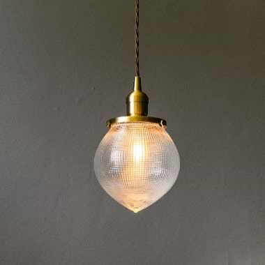 Petite and sophisticated, the Hollen Acorn industrial pendant features an Acorn shaped prismatic Holophane style glass shade topped with a solid brass cap. Originating in style from the 1930s, this pendant looks sensational when hung in multiples - either in a row or grouped at differing heights. The textured cut glass gives off a fabulous distribution of light and different coloured bulbs can be used to create different moods.