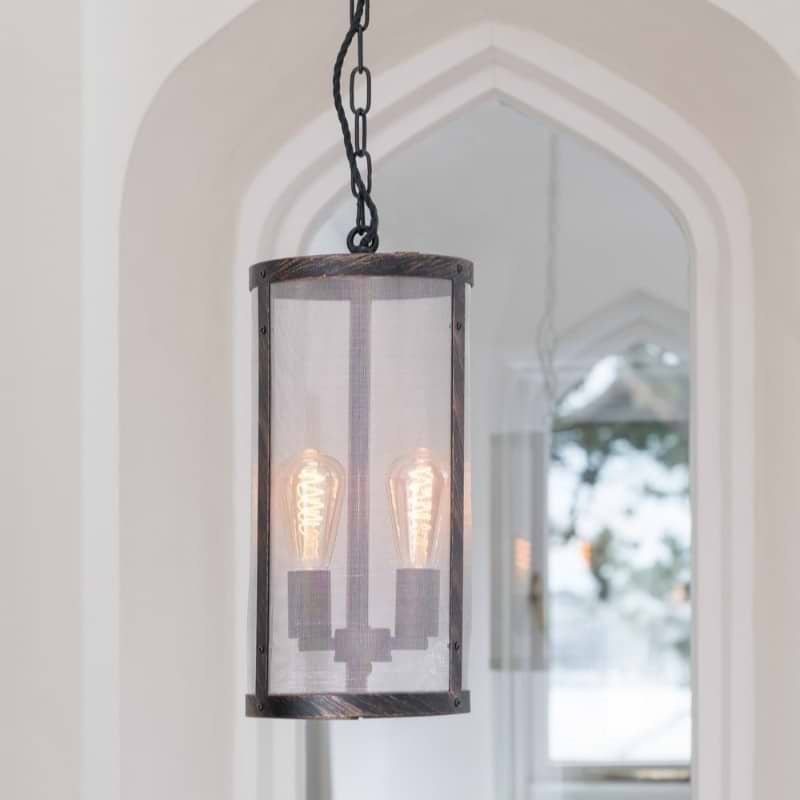 Beautifully designed with two light fittings surrounded by a mesh cylinder and iron frame, the unique and rustic Tisbury Cylinder lantern pendant allows for light to shine in all directions providing both warmth and ambience. The Tisbury is perfect for a vintage or industrial setting.